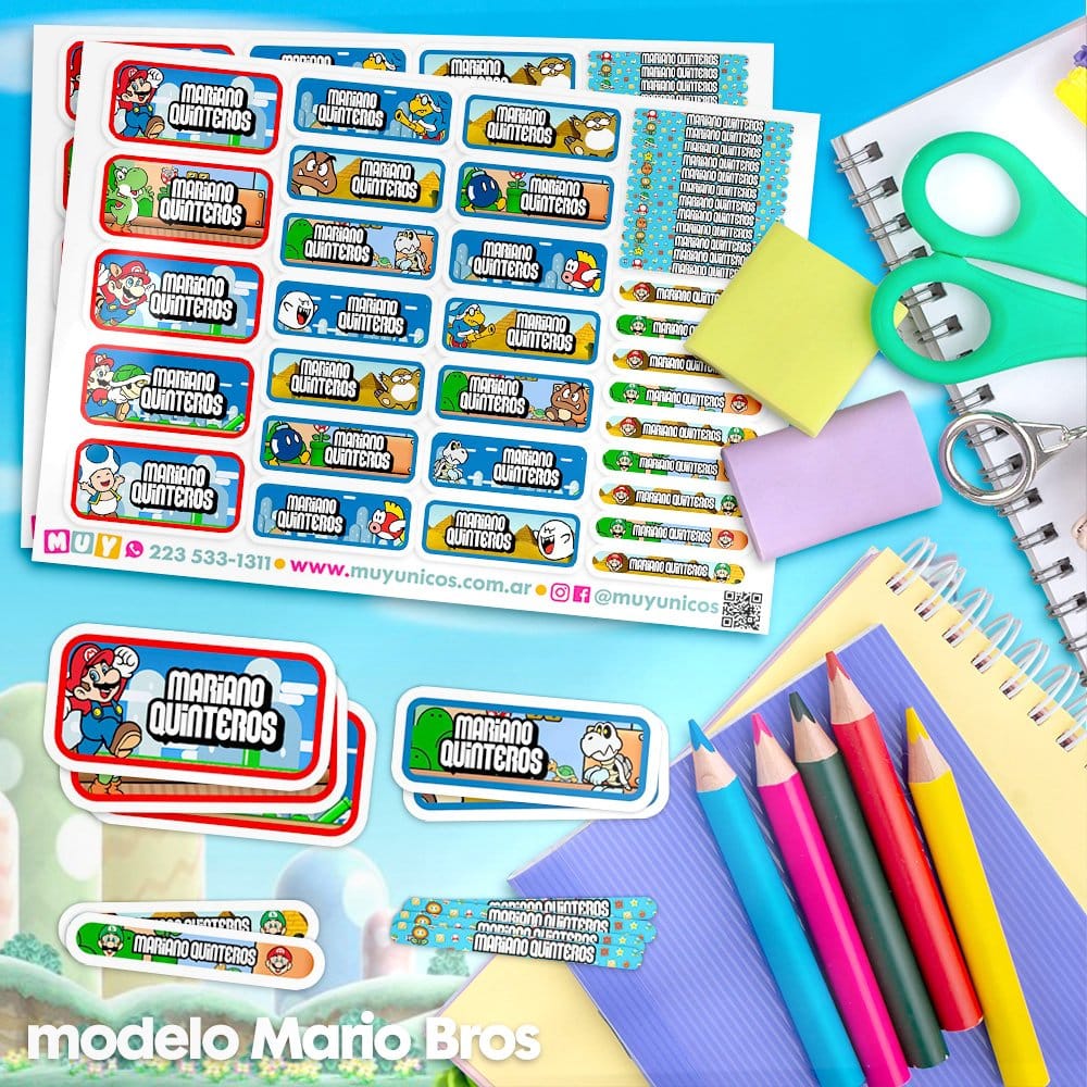 Etiquetas Escolares para Imprimir | Mario Bros (Archivo Digital PDF)