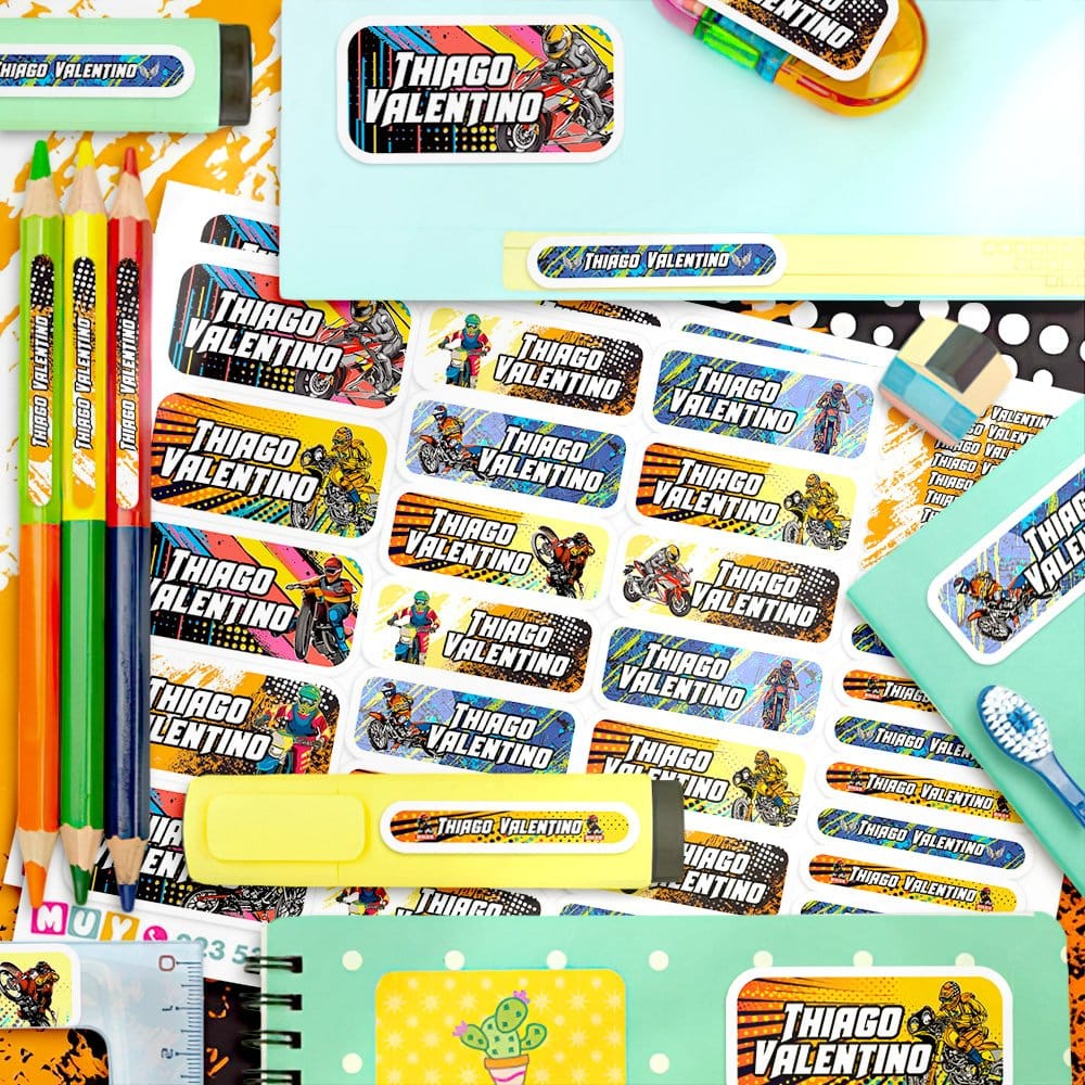 Etiquetas Escolares para Imprimir | Motocross (Archivo Digital PDF)