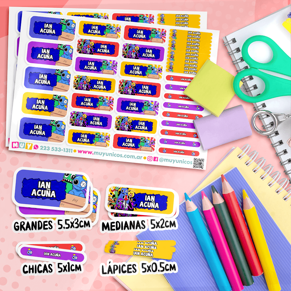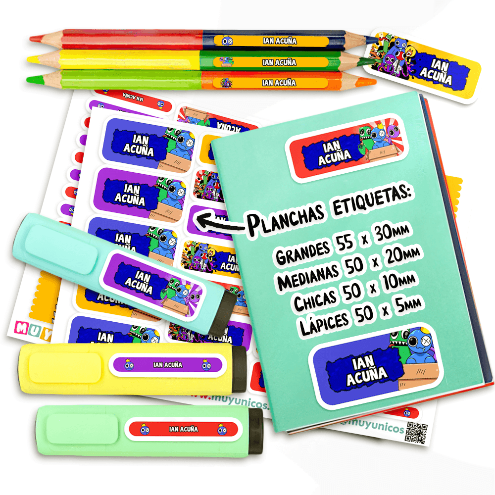 Etiquetas Escolares para Imprimir | Rainbow Friends (Archivo Digital PDF)