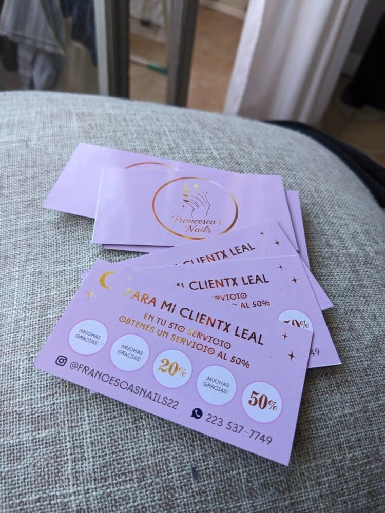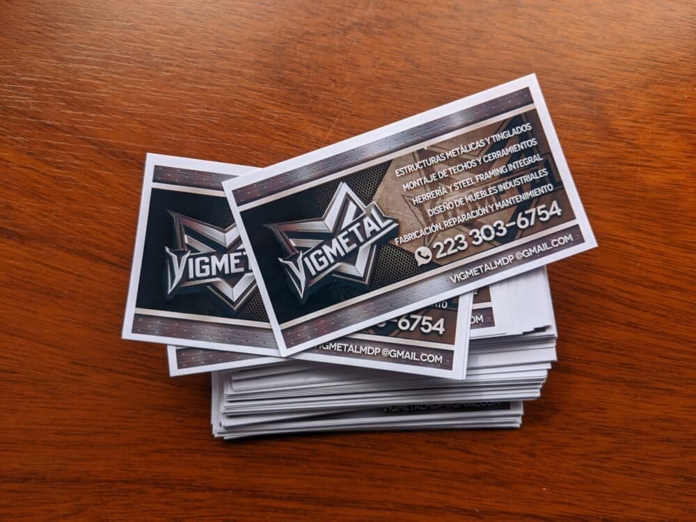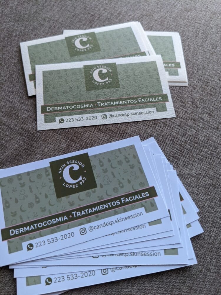 Pack de 120 tarjetas personales impresas en alta resolución con tintas de resitencia UV. Tamaño: 52,5 mm x 95 mm